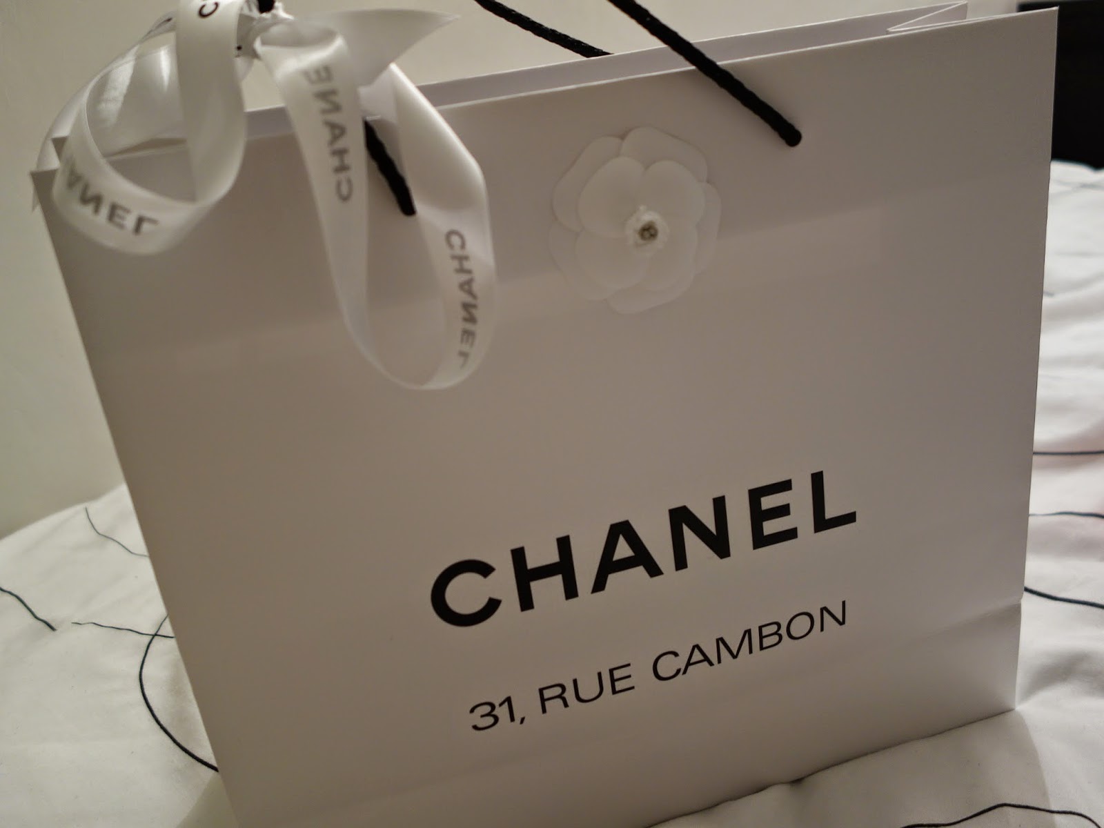 我們等了約十五分鐘左右。服務我們的是一位年約五十吧(大概和N爸看起來差不多的)男SA。我本來以為因為他看起來很嚴肅還有點失望,沒想到他人超好。雖然說不會熱情,但是又禮貌又專業又有點俏皮。等包裝還有退稅的時候還有和他隨意聊聊到Coco Chanel的工作室二樓這樣。他就硬是要帶我們來照相,還叫我要把袋子拿在手上(哎呦,好矯情噢!)