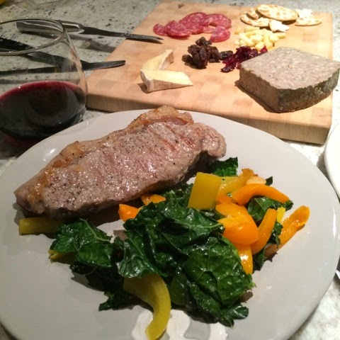 晚餐:紅酒/起司盤/莎朗牛排/彩椒羽衣甘藍