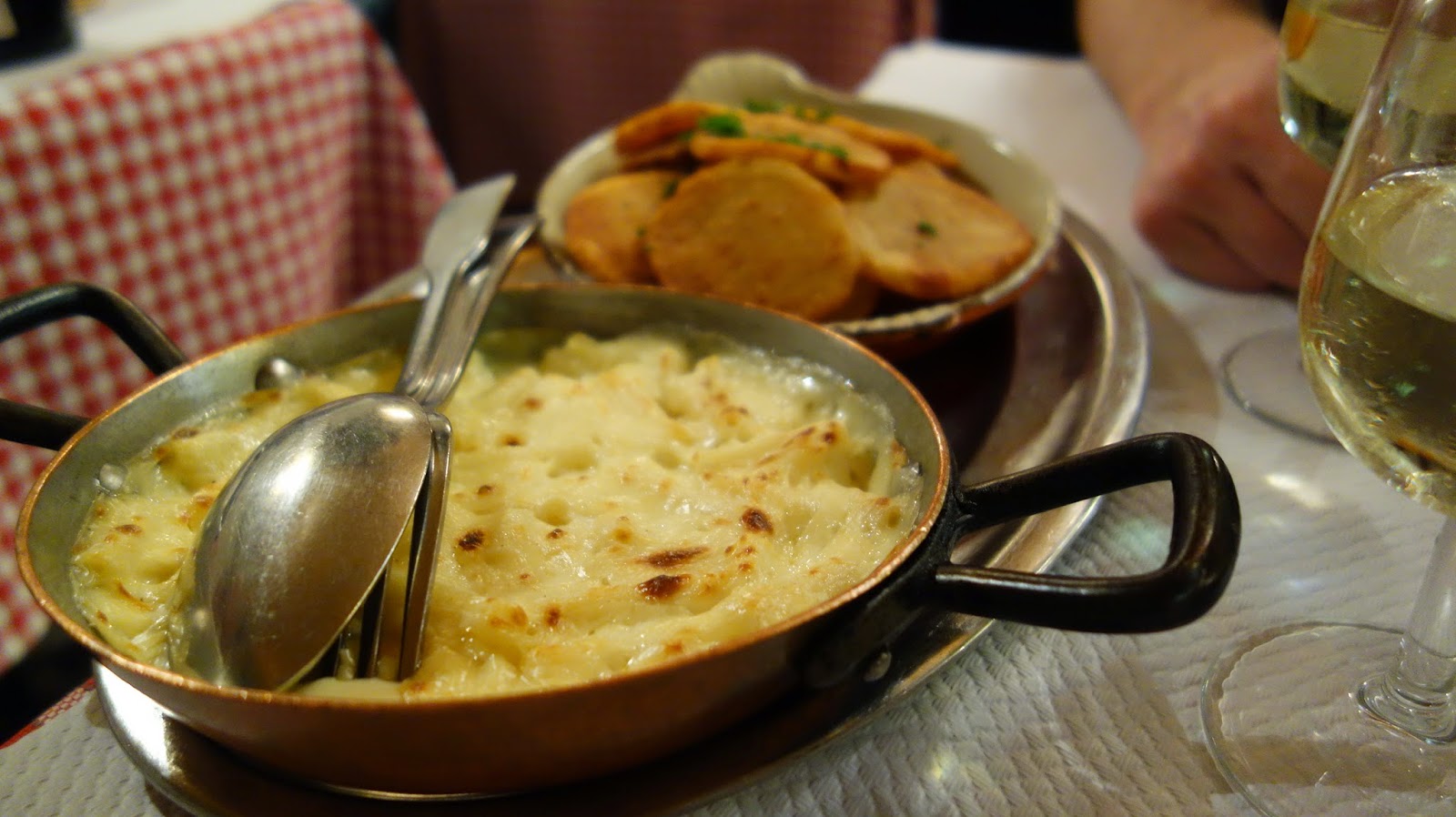 離開SC家前,她有先幫我們解釋一下菜單。所以很多都是點她推薦的值得嘗試的里昂菜。她先前有提醒我們里昂這邊很多料理都有用內臟去入菜,不過我剛剛好很愛!也在還沒走出家門前我們就決定要點白酒搭配了。(也被提醒可以試試這裡當地的隆河產區的酒)