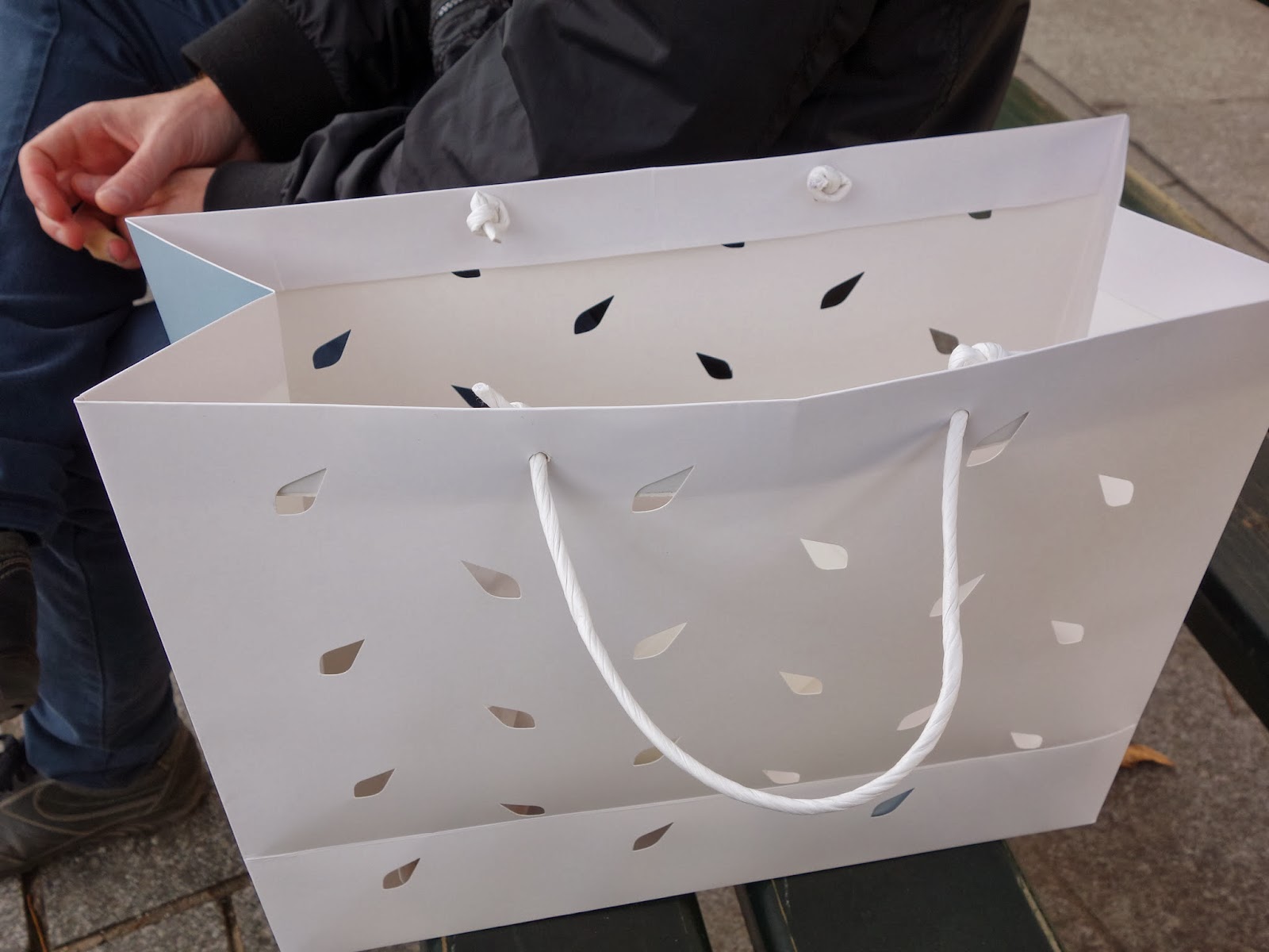 在排隊等待的時候我就一直很擔心被買完,但是幸好工作人員都會一直拿出來。只買一個太可惜了。荔枝以及玫瑰的組合真的很好吃。RCS也是大為驚豔。下次來的朋友,請一定要購買!話說Ispahan的相關產品相當多,舉凡果醬(這次也購入了,滿意!),茶,牛嘎糖,到包包,通通都有。這就是要讓粉絲荷包大失血。幸好我很理智,應該是不會購入包包(其實還蠻可愛的噢)。
