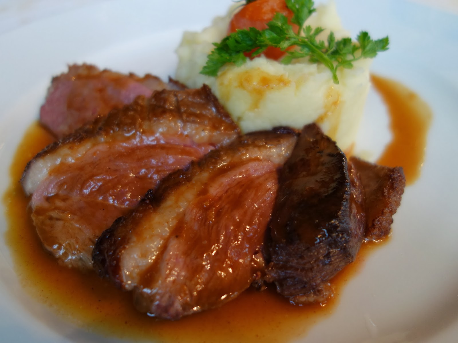 我依然是不怕胖(反正在度蜜月耶)的點鴨胸料理。醬汁還有鴨胸通通被掃得乾乾淨淨。不過我還是無法吃皮,以及附在皮旁邊的那條肥肉。馬鈴薯部分我覺得有點無聊,我比較喜歡用麵包沾醬汁吃。來法國後,每餐都吃好多麵包!
