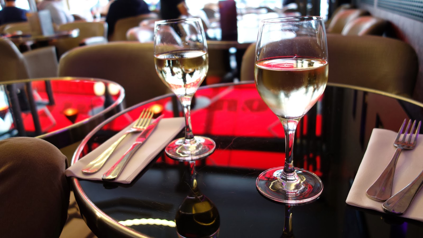 感激法國人超級晚的用餐習慣,我們坐下的時候六點多還有Happy Hour的酒單。隨意挑了支偏乾(不甜)的白酒後慢慢研究菜單。
