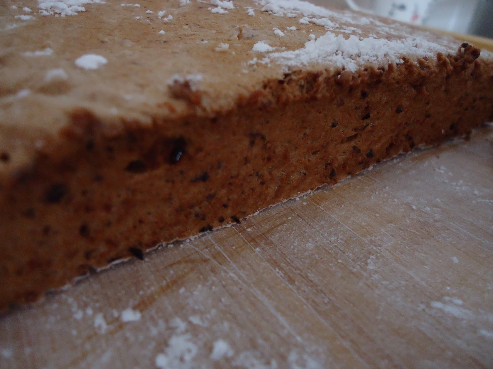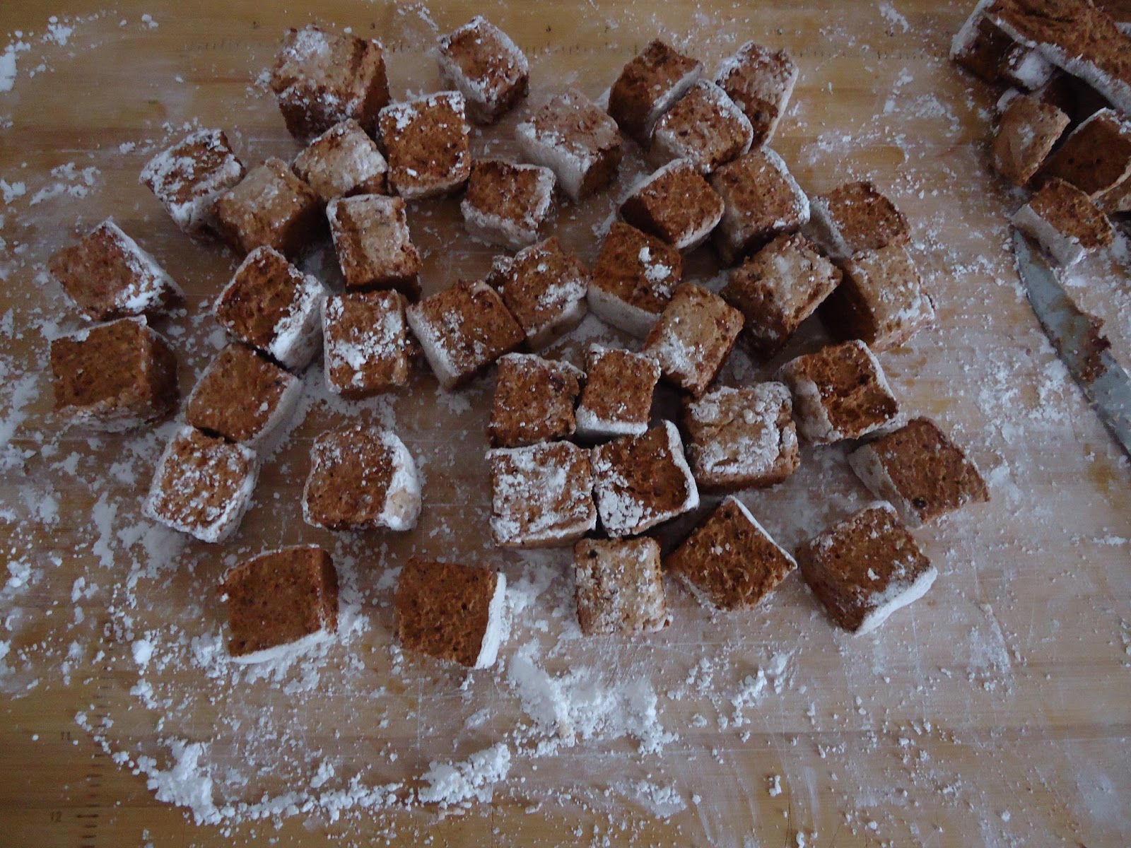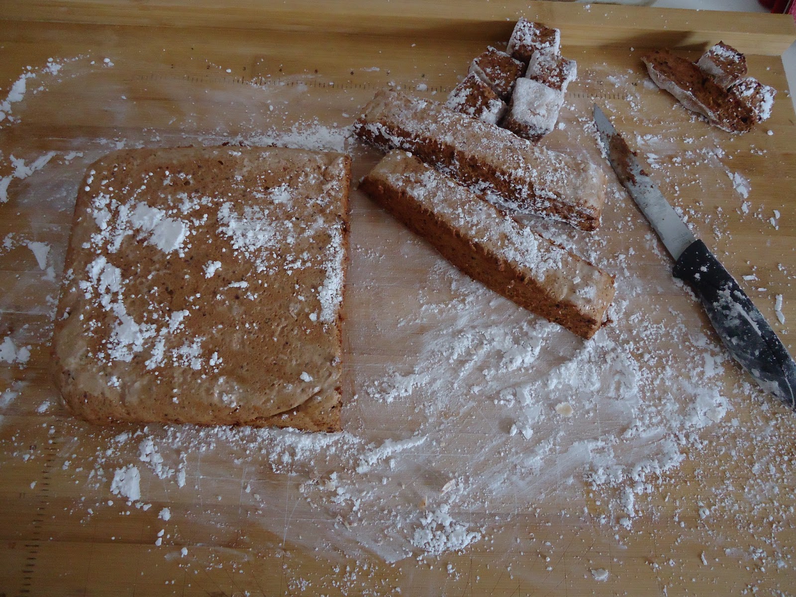 然後要表面撒上更多糖粉後讓它完全冷卻,建議不蓋起來的放隔夜。白天起來就可以脫膜了。