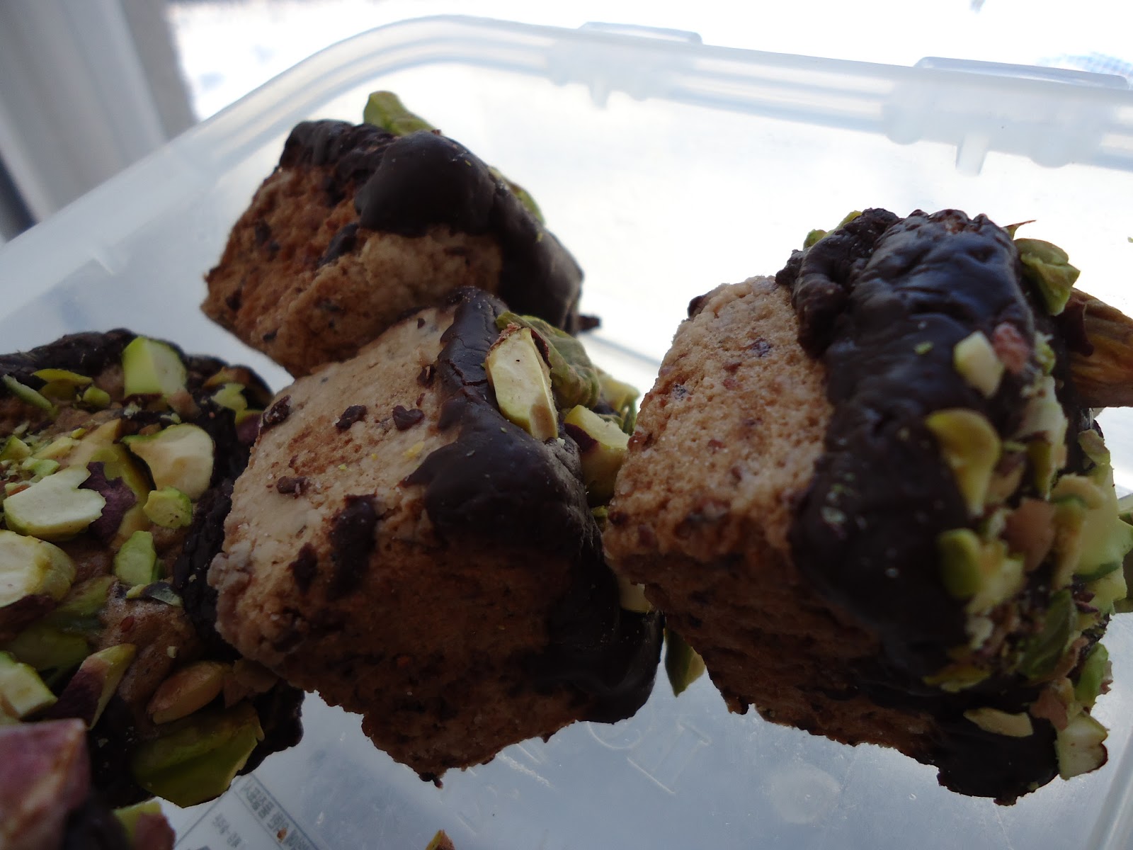 外表沾上黑巧克力和開心果可以讓綜合一下甜度。