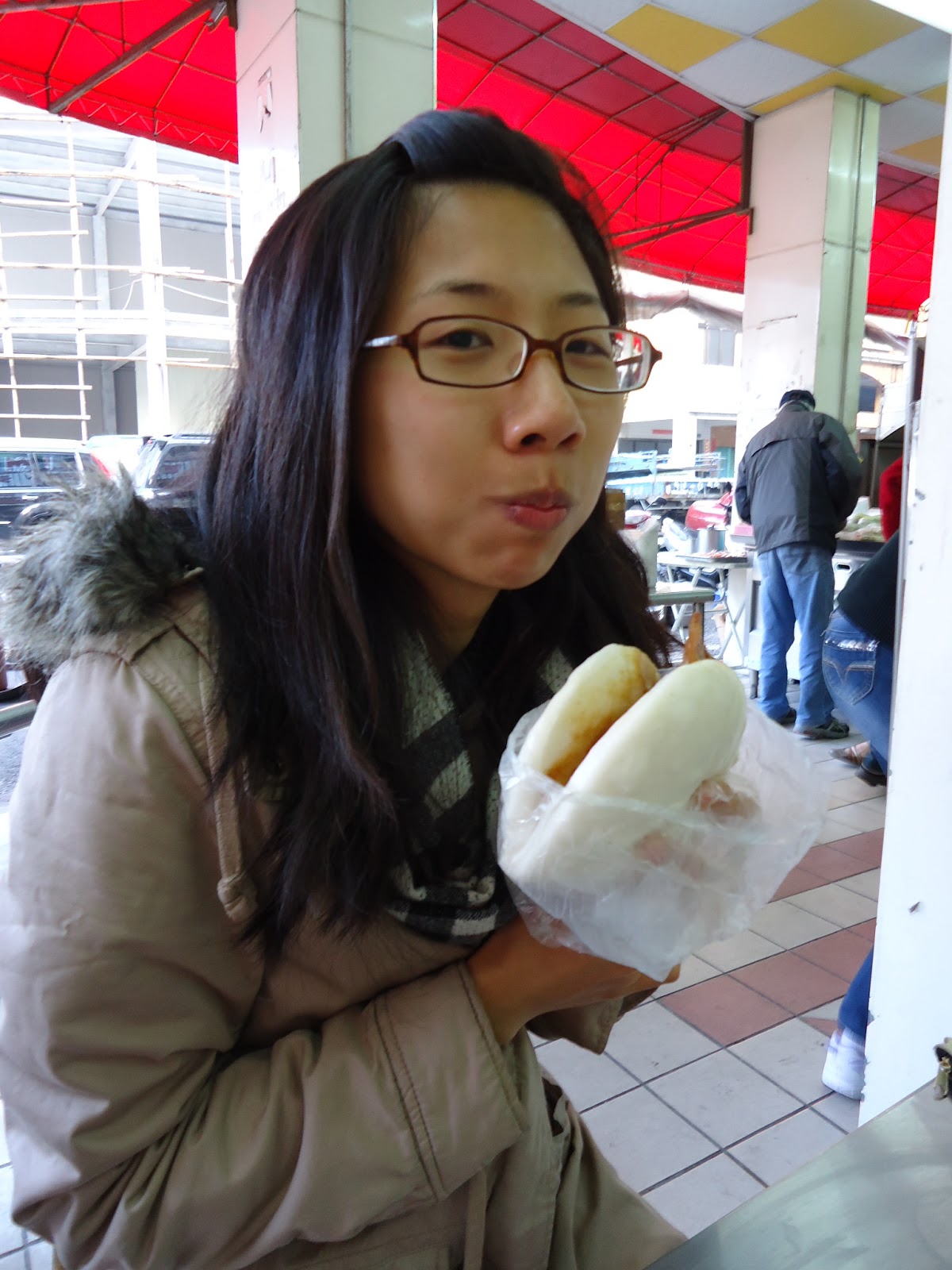吃的時候極度燙口,所以請格外小心。大概等了五分鐘都還是很燙,一直冒白煙。附上戴著婆婆圍巾的 RCSIII ,因為婆婆一直怕這在大冬天穿短褲的美國人冷到。
