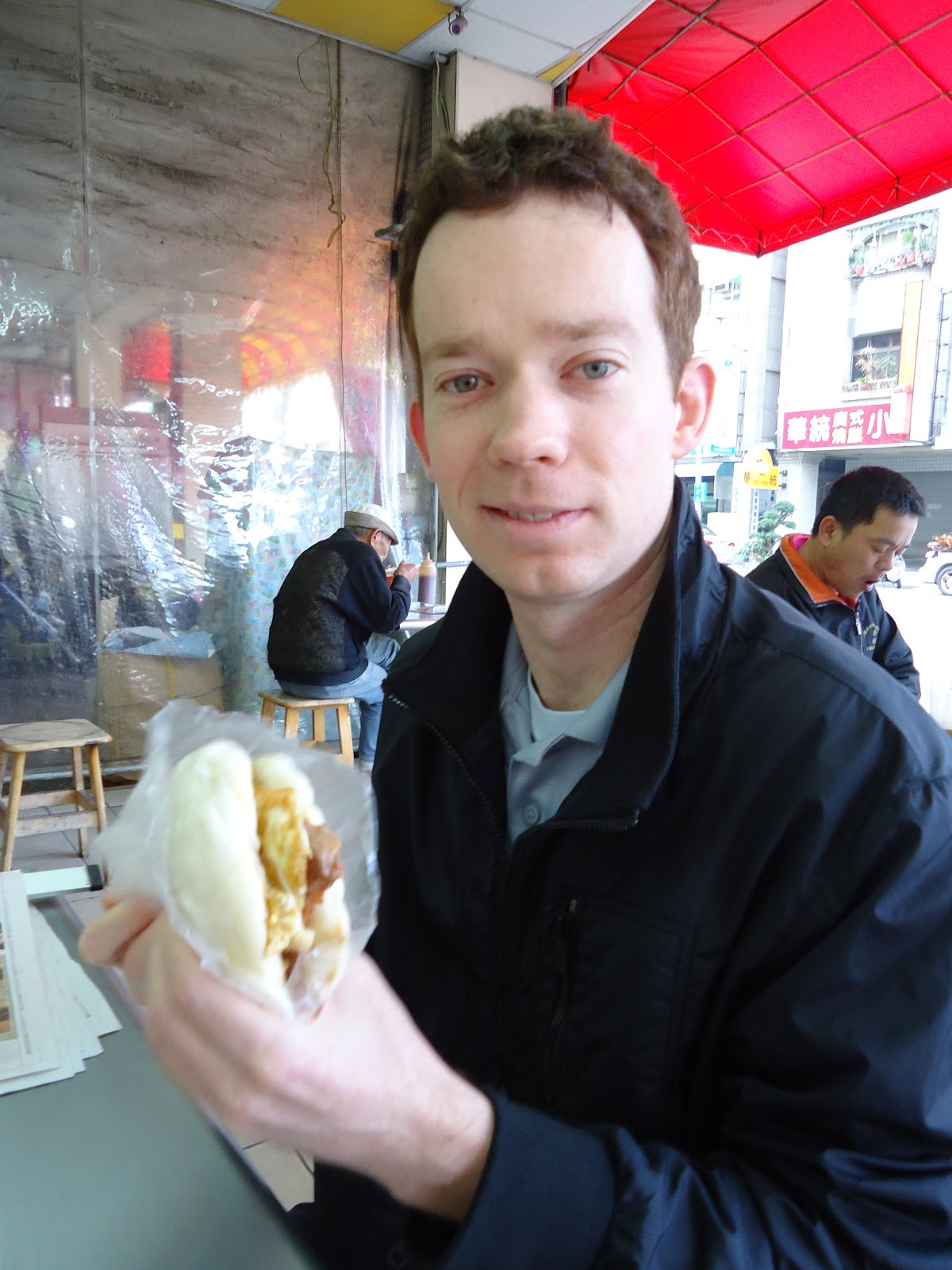 可以看得出這個人還在睡眼惺忪吧。但是他也說割包好吃。偶爾換點口味很不賴。