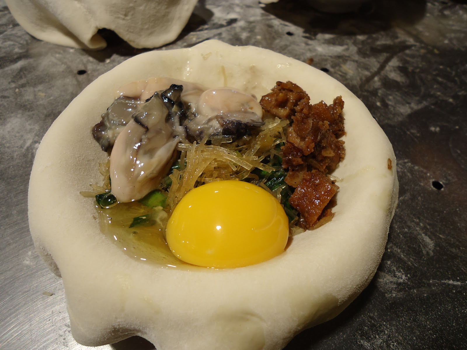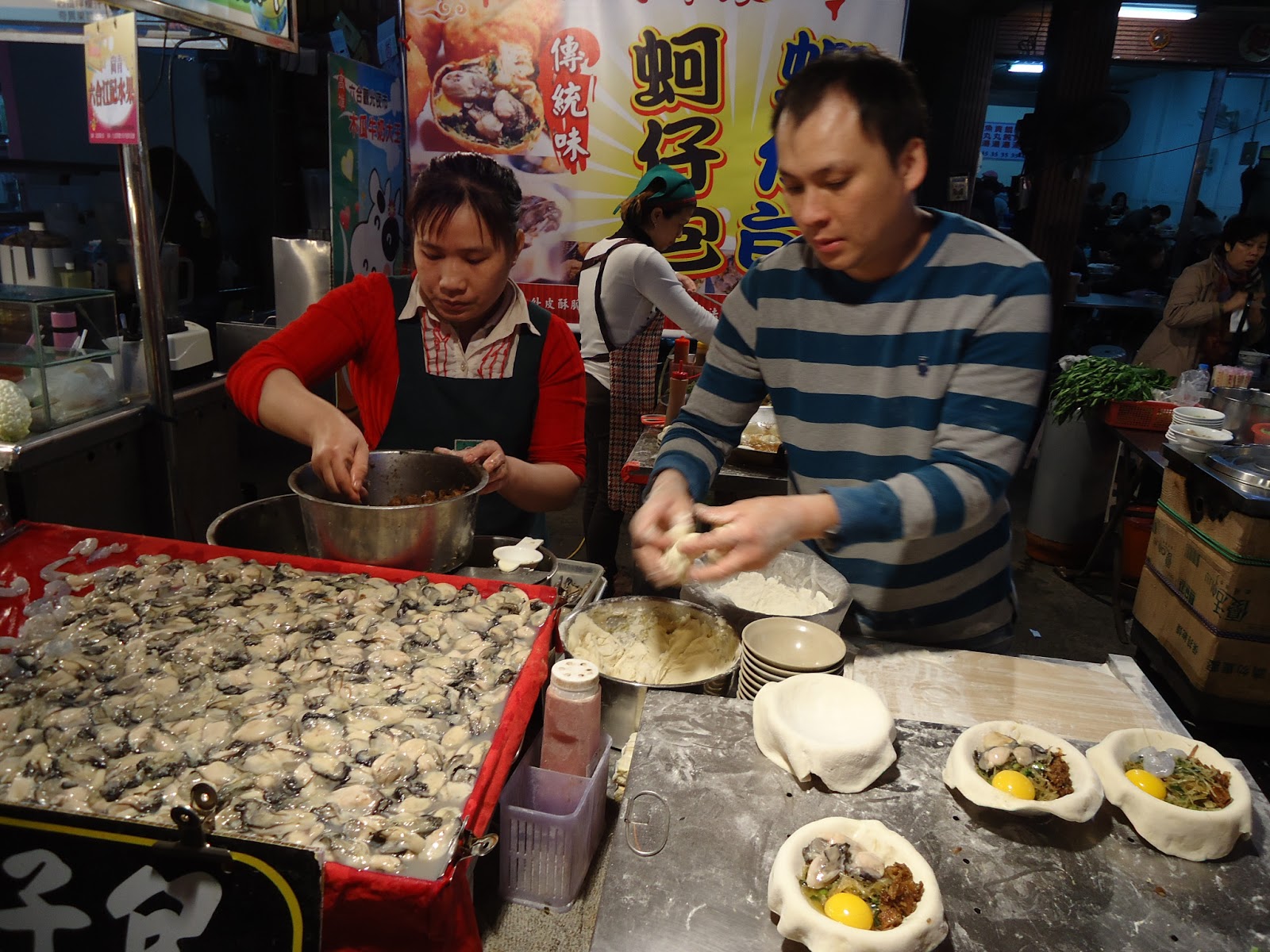 完全被這些蚵仔給吸引住而停了下來。這叫做蚵仔包。在台北都沒看過耶!