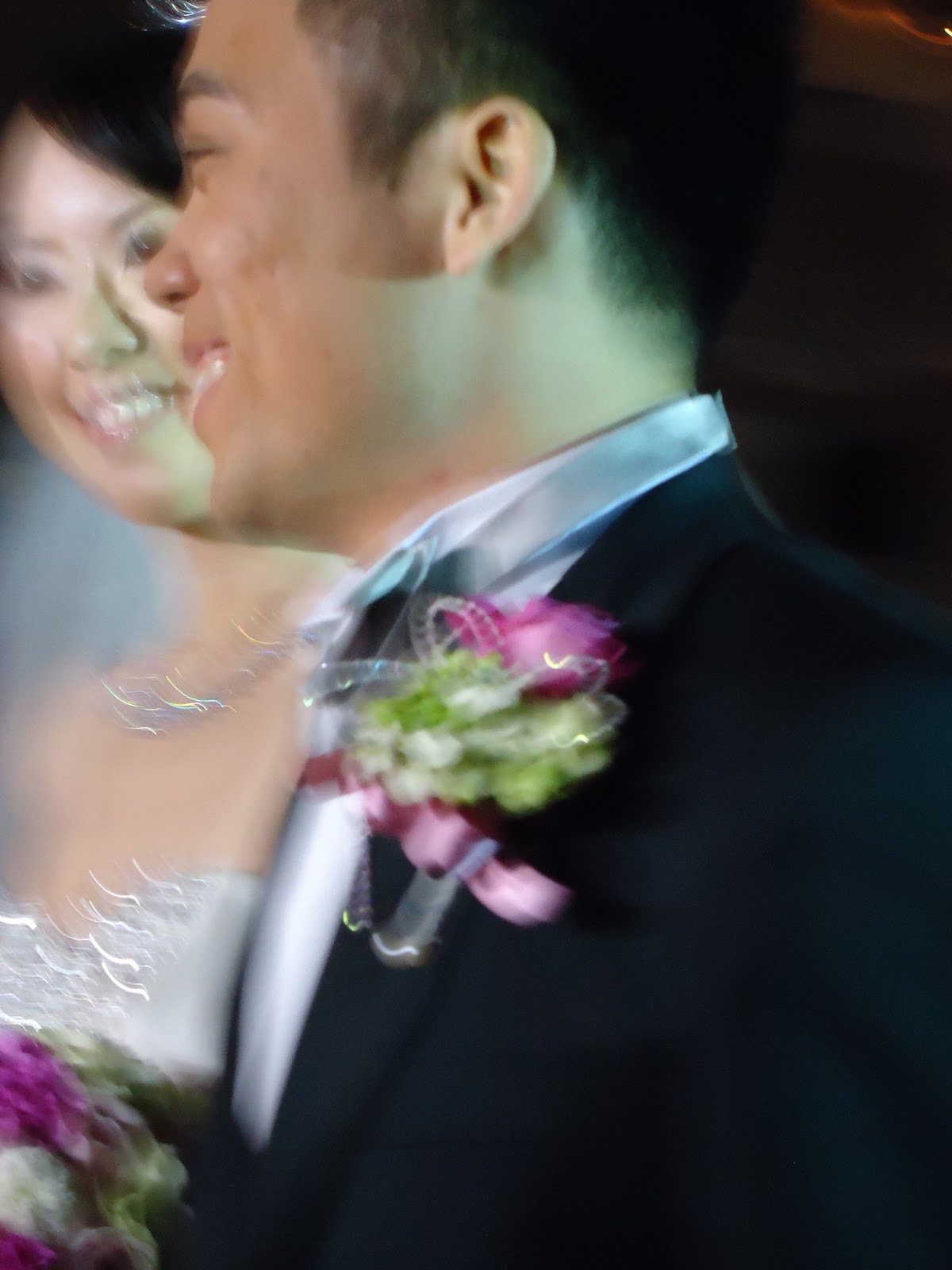 話說當天新郎新娘活動很多,場地很大又有很多桌,所相當慚愧這是我照到新人最清楚的一張(也真是超模糊的!哭哭)。不過新娘超美是真的,我有用眼睛記住。