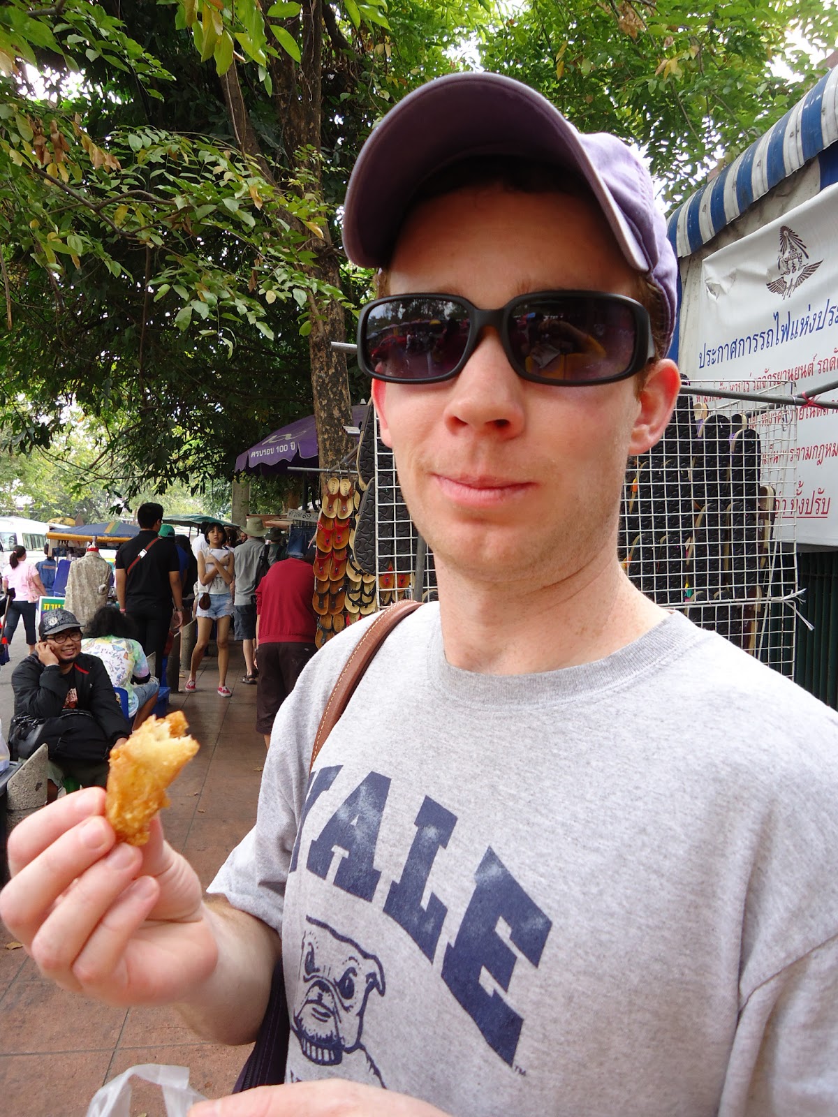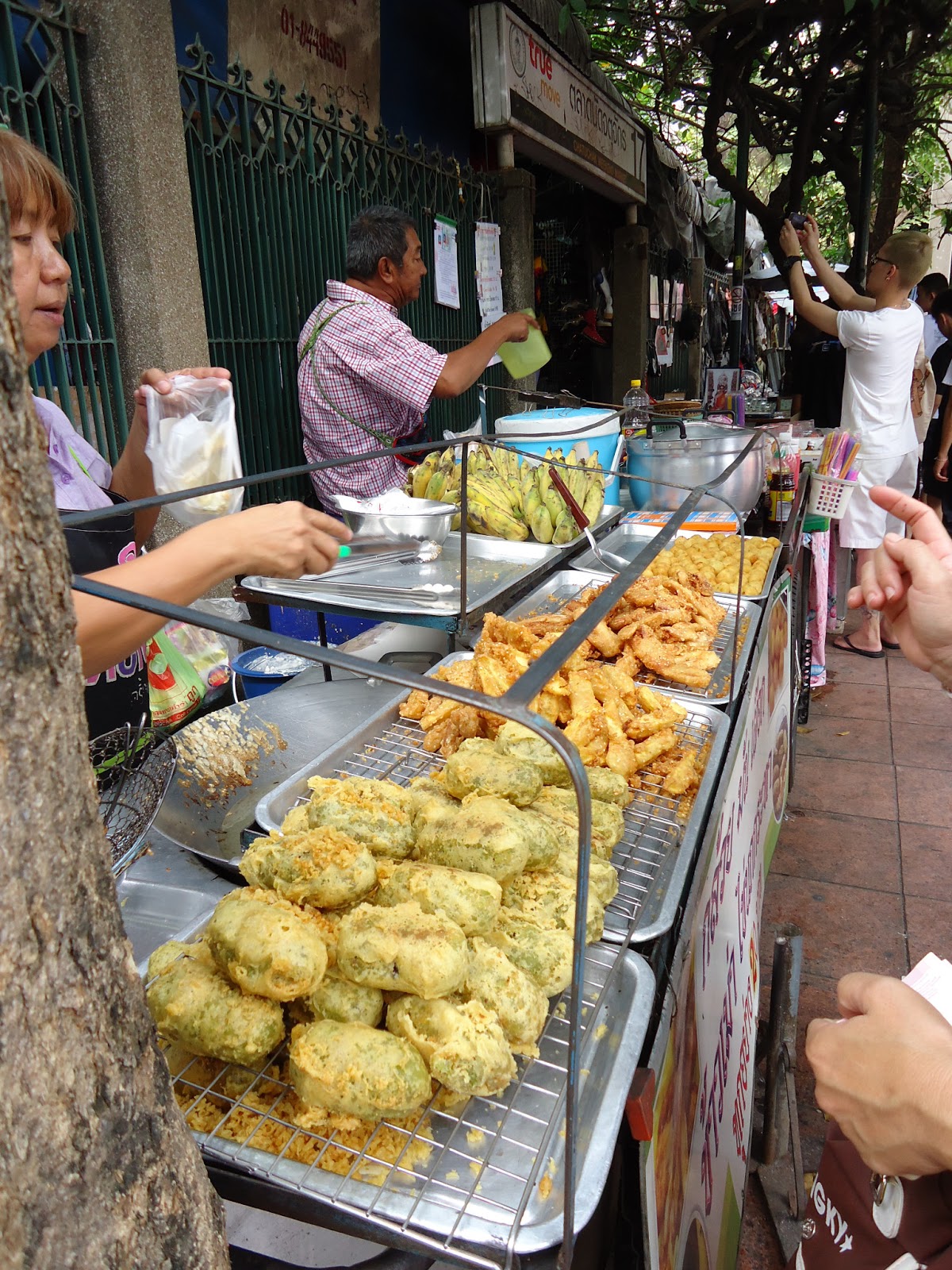 最後愛吃炸物的美國人吵著要吃炸香蕉。話說我們其實有一直在市場內留意,但是真的都沒到。所以最後還是走到場外的一家我們一開始走進來看到的攤子去買來吃。
