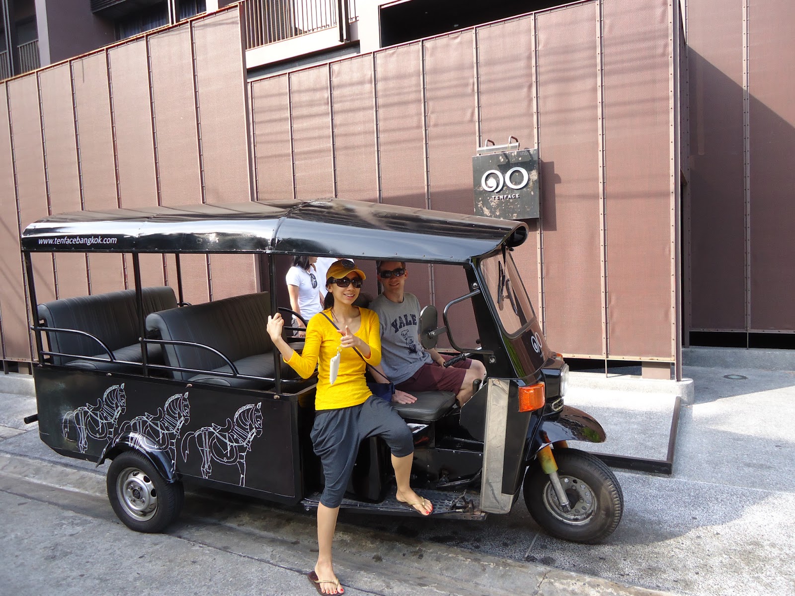 因為要離開了,所以我們先吃早餐,check out之後把行李寄在飯店裡。和這三天歇腳處的大門照張像後發現N爸N媽不見了。原來是跑去和嘟嘟車照相。