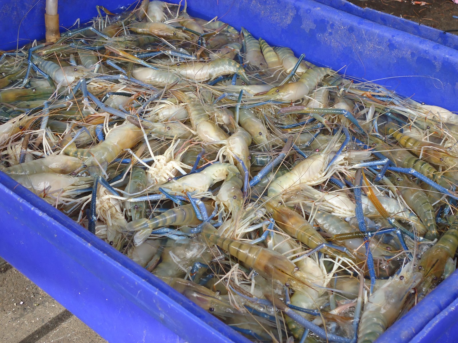 接下來又看到很生猛的泰國蝦。新鮮現烤!但是因為我們等等打算吃海鮮午餐,所以只好留著口水照張相。
