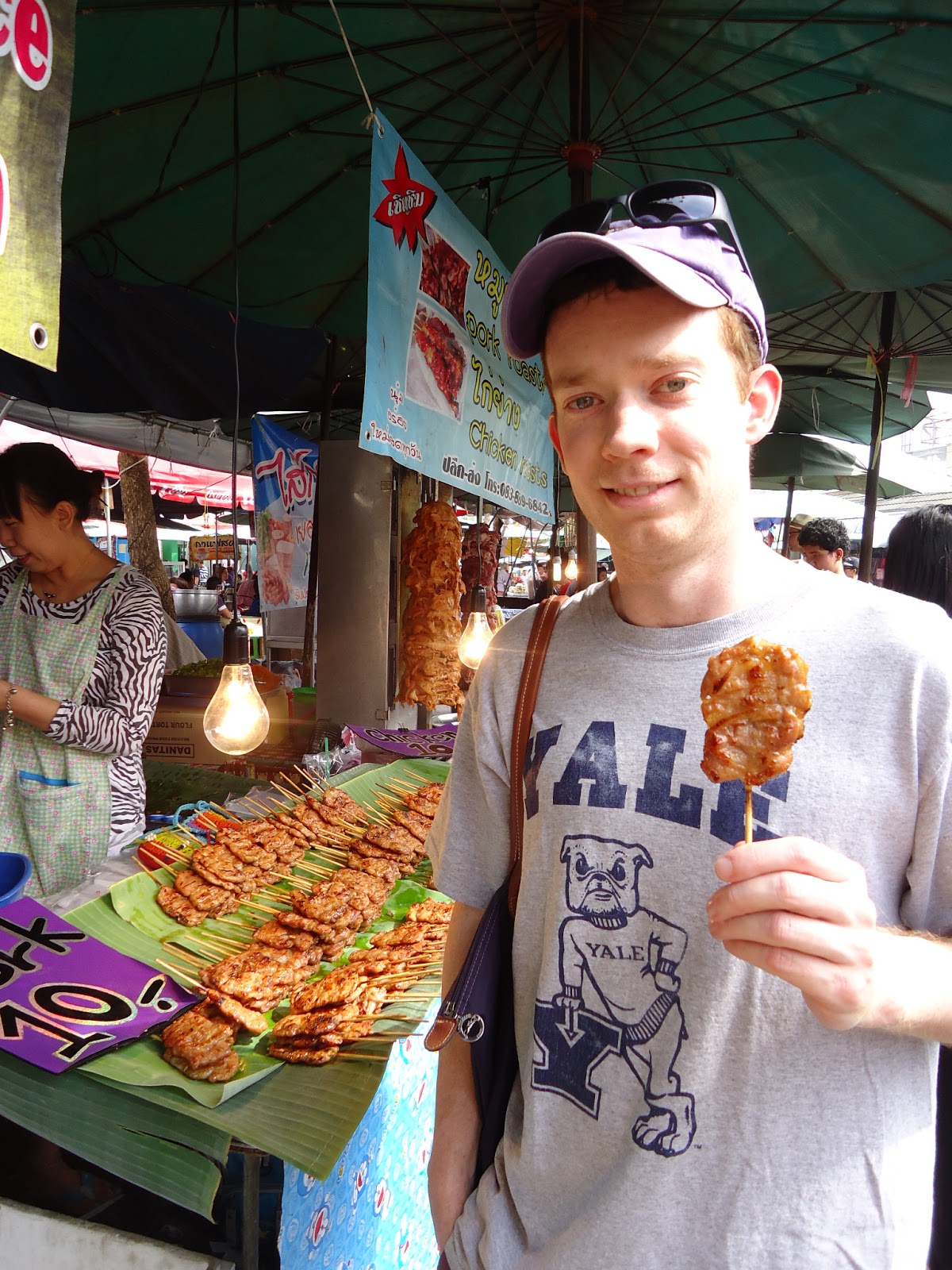 這攤有賣雞肉和豬肉,但是雞肉好像都沒在烤,所以只有豬肉,一支 10 Baht。 我覺得又肥又油,但是RCSIII說好吃。不過我吃了一口之後,覺得豬味很重,所以不准RCSIII再吃。
