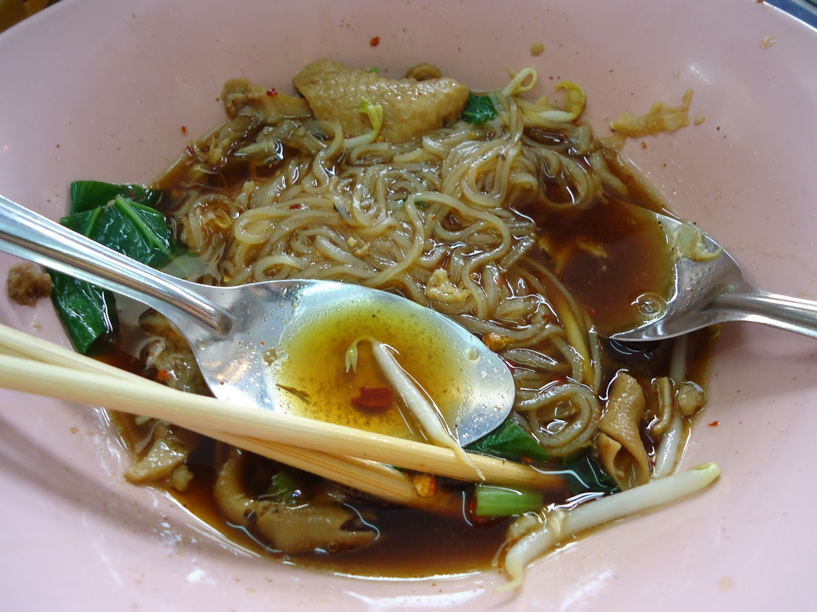 裡面有蠻多鴨肉,鴨皮,還有鴨腸。湯頭口味也不錯。 40 Baht 應該算是很划得來喔。