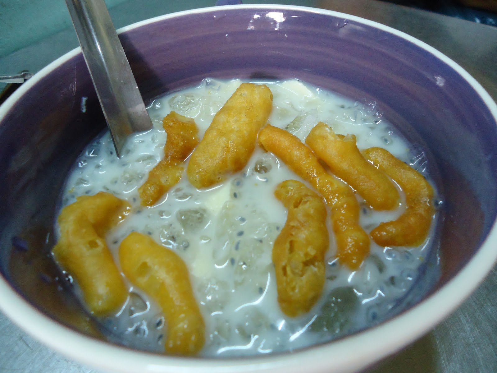 N爸點的是豆花豆漿,山粉圓,銀杏,還有黃色一條條炸的脆脆的麵糰。