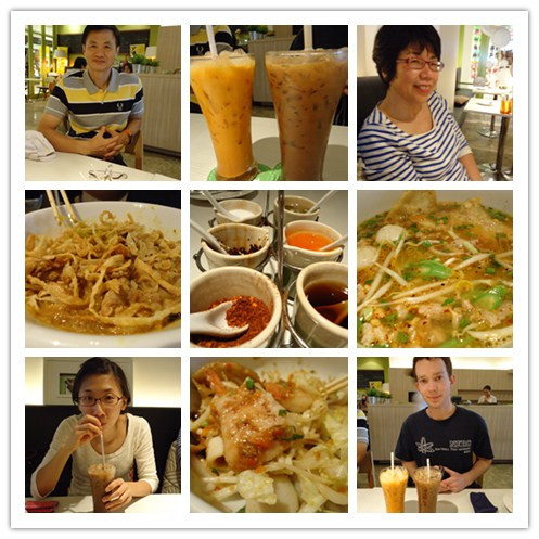 話說最後選了一了一家賣泰式口味的簡餐店。應該是有很多外國人光臨所以菜單都有圖片和英文。我們點了一杯泰式咖啡兩杯泰式奶茶,雖然口味偏甜,不過這也是早就知道的,因此還是喝的很開心。熱愛喝甜甜的RCSIII更是喜歡,大概因為我們家平常不太喝任何甜的飲料,所以格外珍貴。