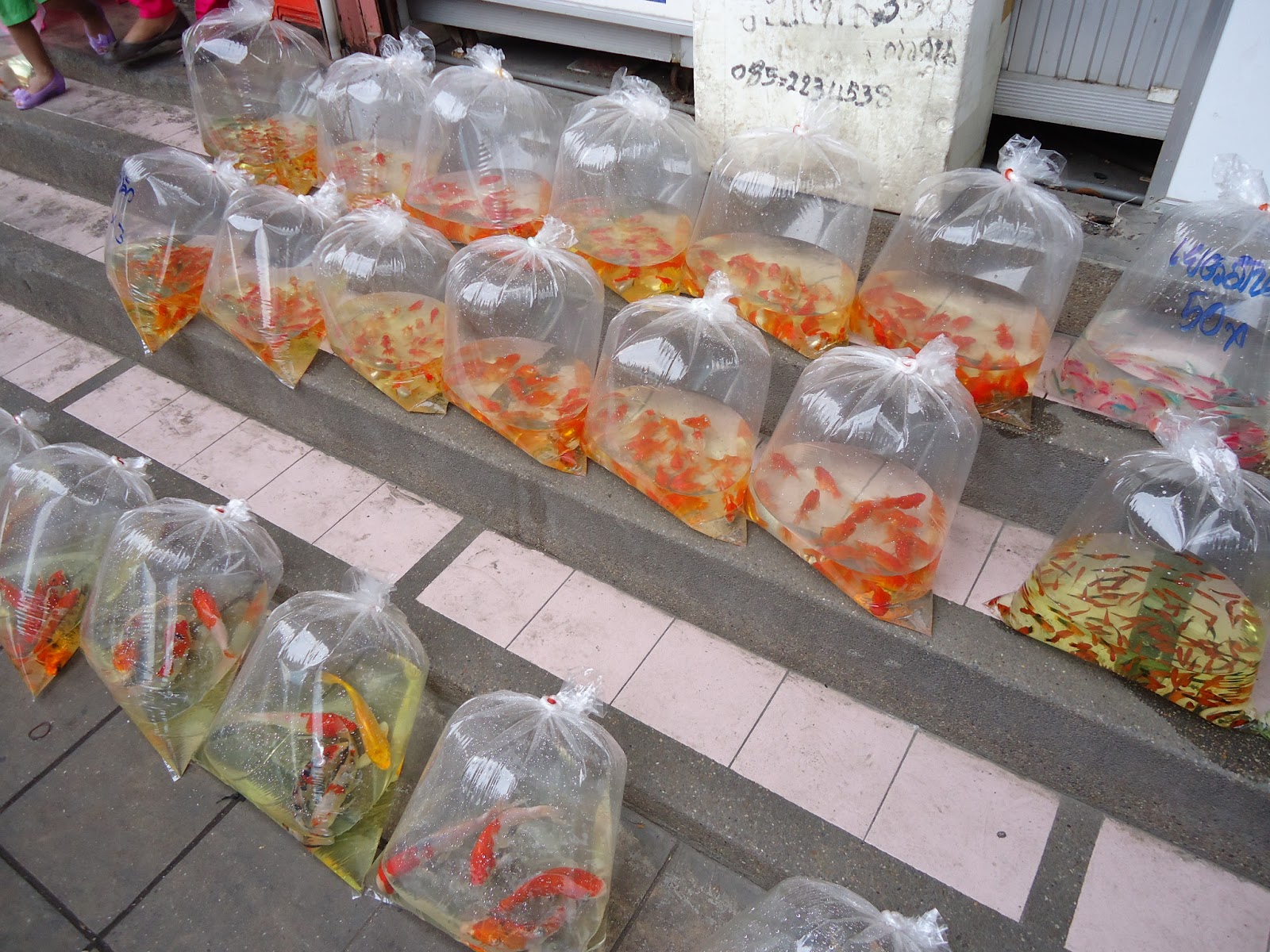 水黃黃又有點霧霧的大概是放得有點久了。看到的魚有大有小,塑膠袋的大小也跟著放大縮小!