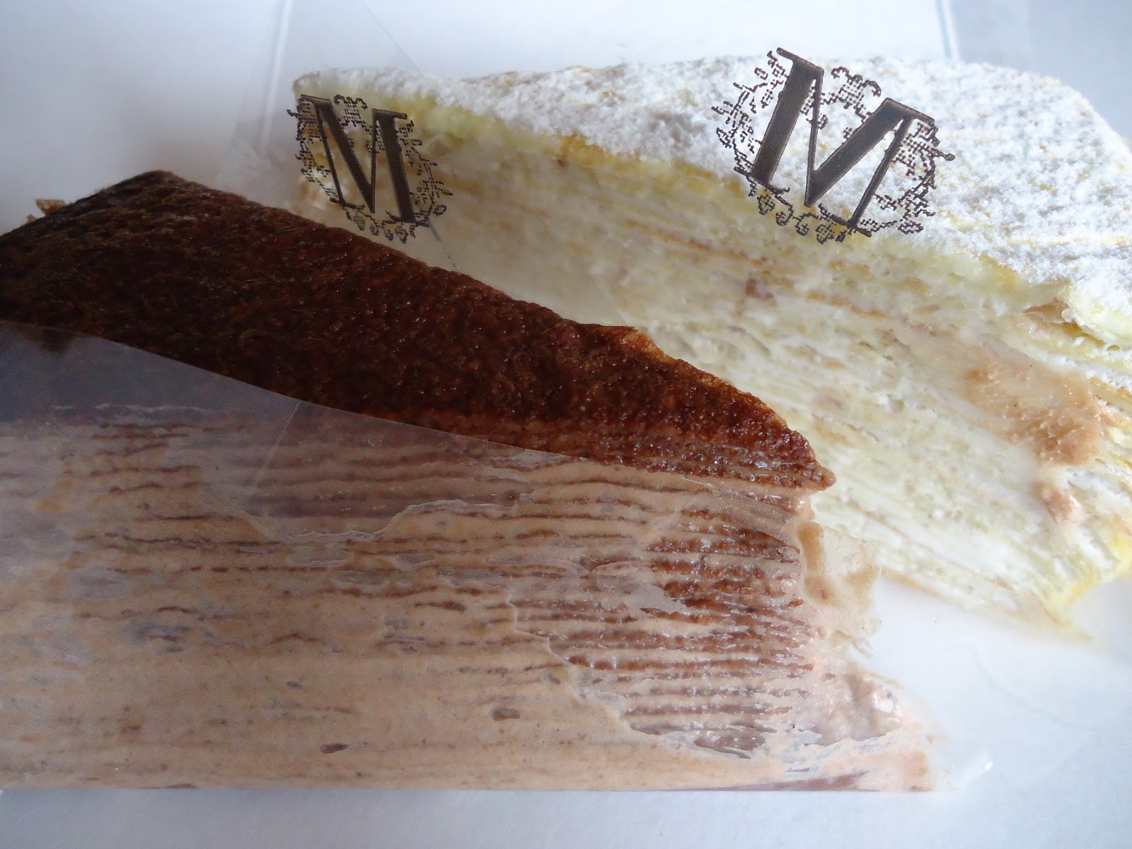 Lady M 是我很喜愛的Japanese-French 甜點店,因為在 Plaza Hotel Food Hall 新開了櫃點,所以也特別櫃點限定了新口味 Chocolate banana Mille Crêpes。一看到新聞得我馬上就想吃,但是因為太忙了,所以等到現在才吃到。當場也購入了季節限定的 Marron Mille Crêpes (栗子口味)一舉完成所有口味的蒐集! (喔,我完全沒把椰子口味算在裡面,當然也是不會買來吃的。)