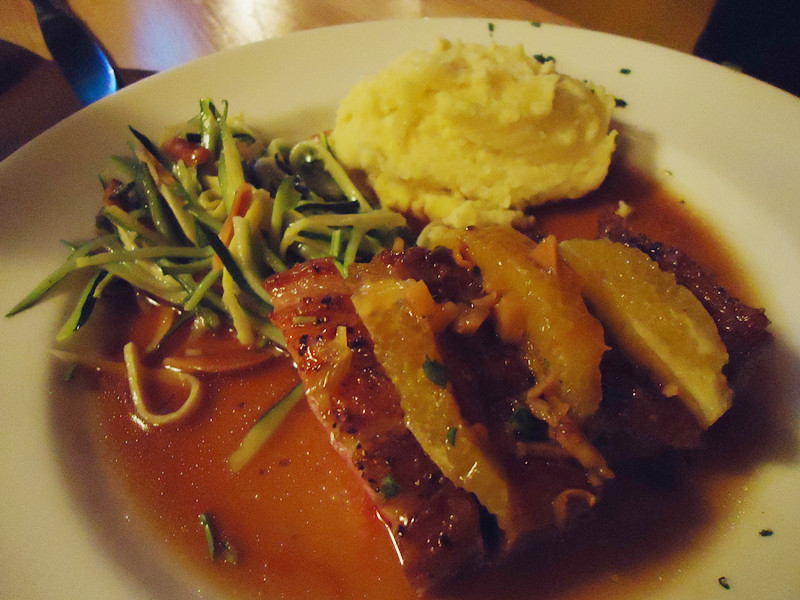 cooked medium rare / ginger orange sauce / creamy gorgonzola polenta /