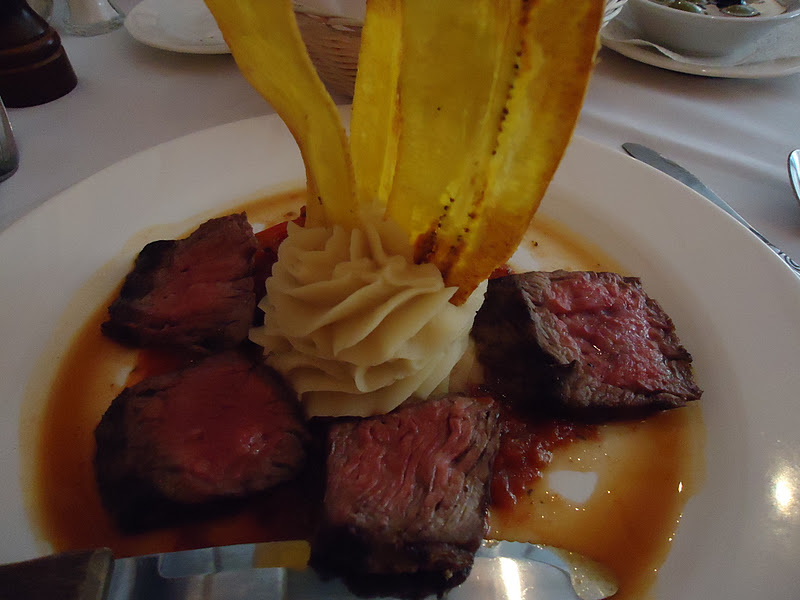 For me, I ordered "Cuban Sirloin" served with a spicy Pepper, Tomato, Mushroom and Onion Pico de Gallo with Mashed Potatoes and fried Plantains.