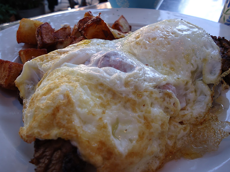 RCSIII's order. It was fried egg and steak on two biscuits and gravy.It was served with their home fries (again, not bad, but so far the pantry has the best home fries!!!). I think it was alright, but I like my French toast a lot better. To be honest, I don't remember this dish all that well. (I don't even remember the name of it...sorry)