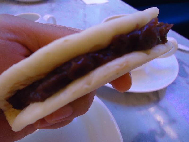 This "dorayaki" looking thing was very delicious. It's like a pancake with azuki (Japanese red bean paste) filling. It took a while since the chef was using the grill to make the pancake part.