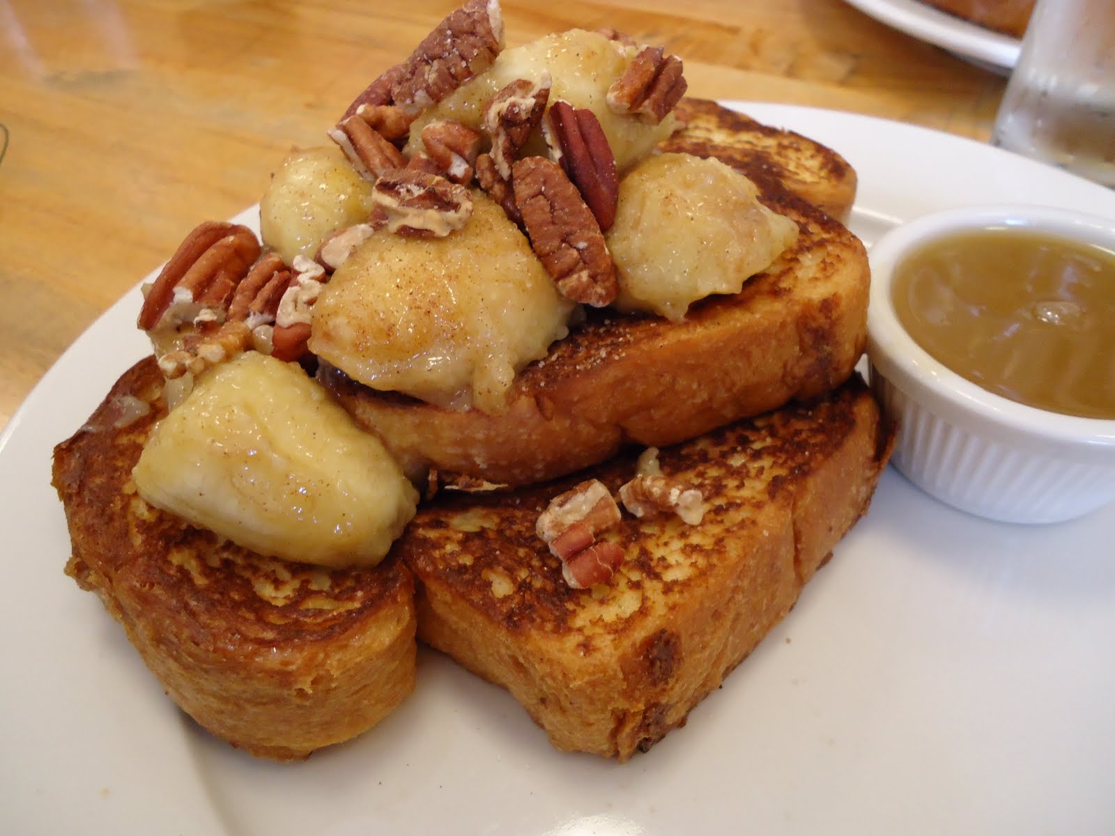 It comes with two thick cut toast with pecan (oh YES!) and caramelized banana (oh YES YES!!!) on top with maple butter syrub on the side (oh my goodness!!!).