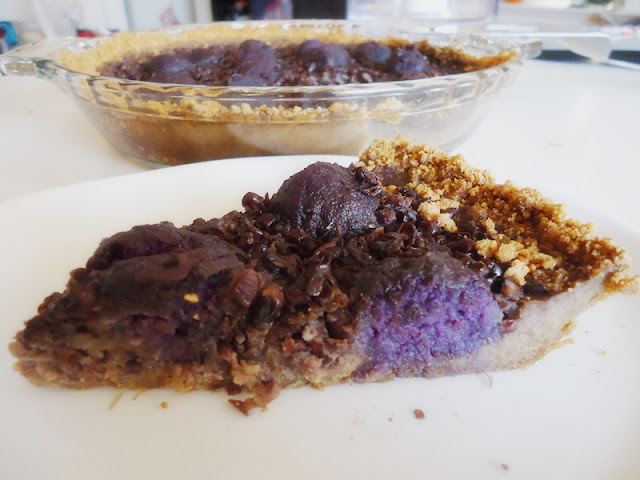 在鎮上的亞洲超市買到紫地瓜的當天就得通通削皮蒸熟。一個配我做的滷味吃,結果發現其實一個很大,所以那天晚上吃好飽(像是有強迫症的硬是要吃完,明明就其實可以剩下來)。所以另一個我就像丟冷凍庫等有時間的時候在想想要怎麼用它。紫地瓜很甜。吃起來很像一般的地瓜但是又有一點不一樣(不過地瓜就連紅肉和黃肉吃起來也有不同)不過這甜得可以當甜點了。對我而言,不管是什麼品種的地瓜,共通點就是通通是我的愛!但是因為紫地瓜比較難買,所以我有更多愛它一點(奇怪的心態)。(另外我也愛芋頭喔)