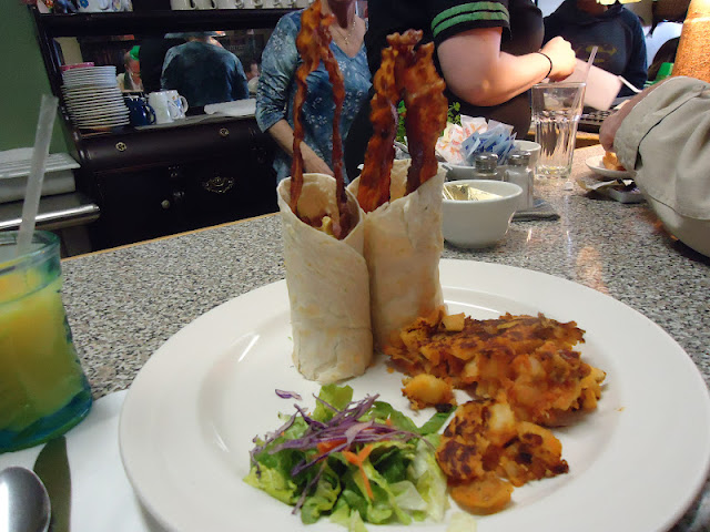 We started with our brunch beverages, coffee for me as usual and KC got a healthy start with orange juice...but then also got this Chailatte, which I didn't try, but I think KC liked it.(She finished it!)